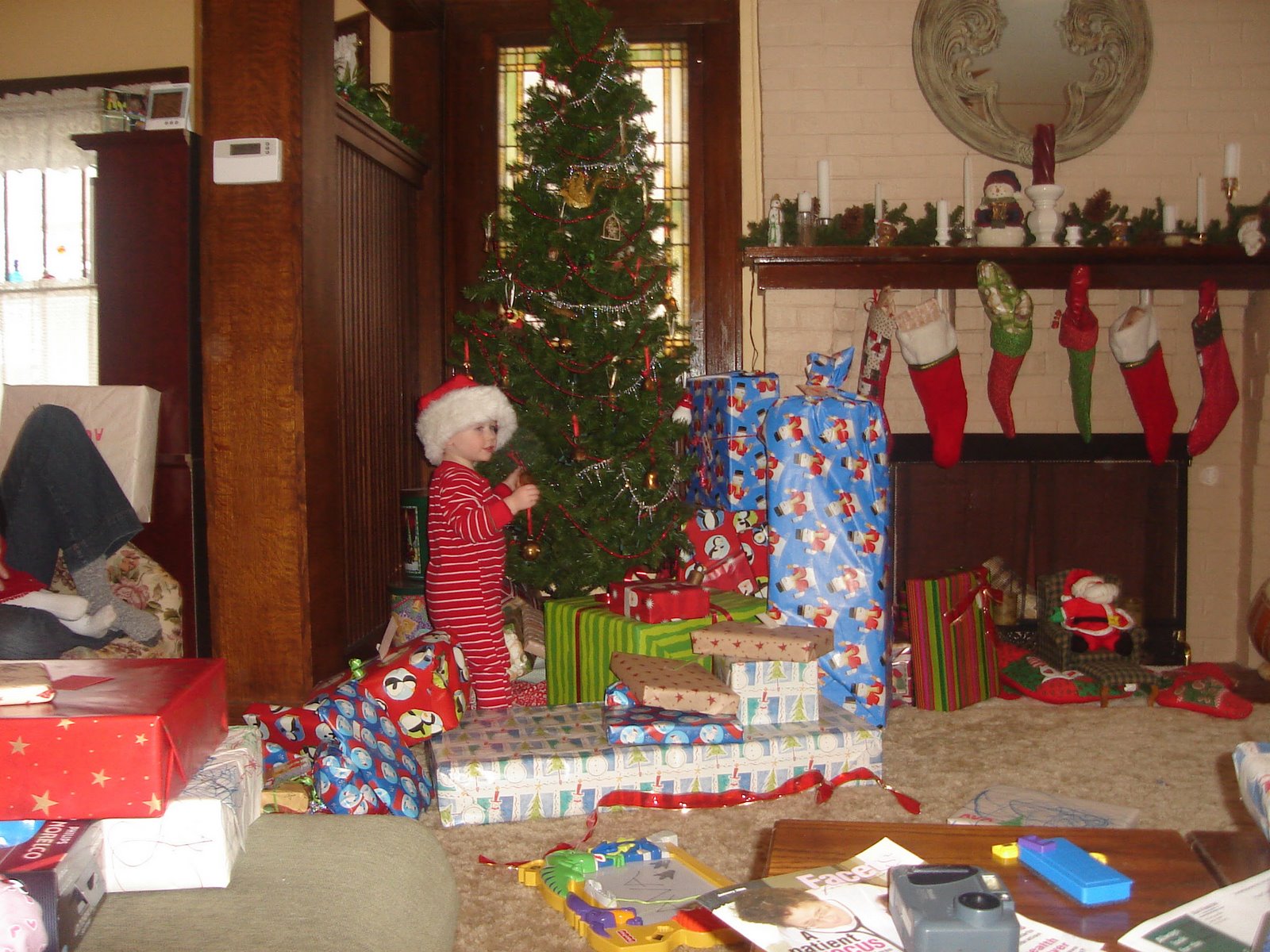 While we were waiting for Ava to wake up and everyone to get ready for present opening, Benji was too excited to wait. He took presents from under the tree and brought them to Grandma to find out who they were for.