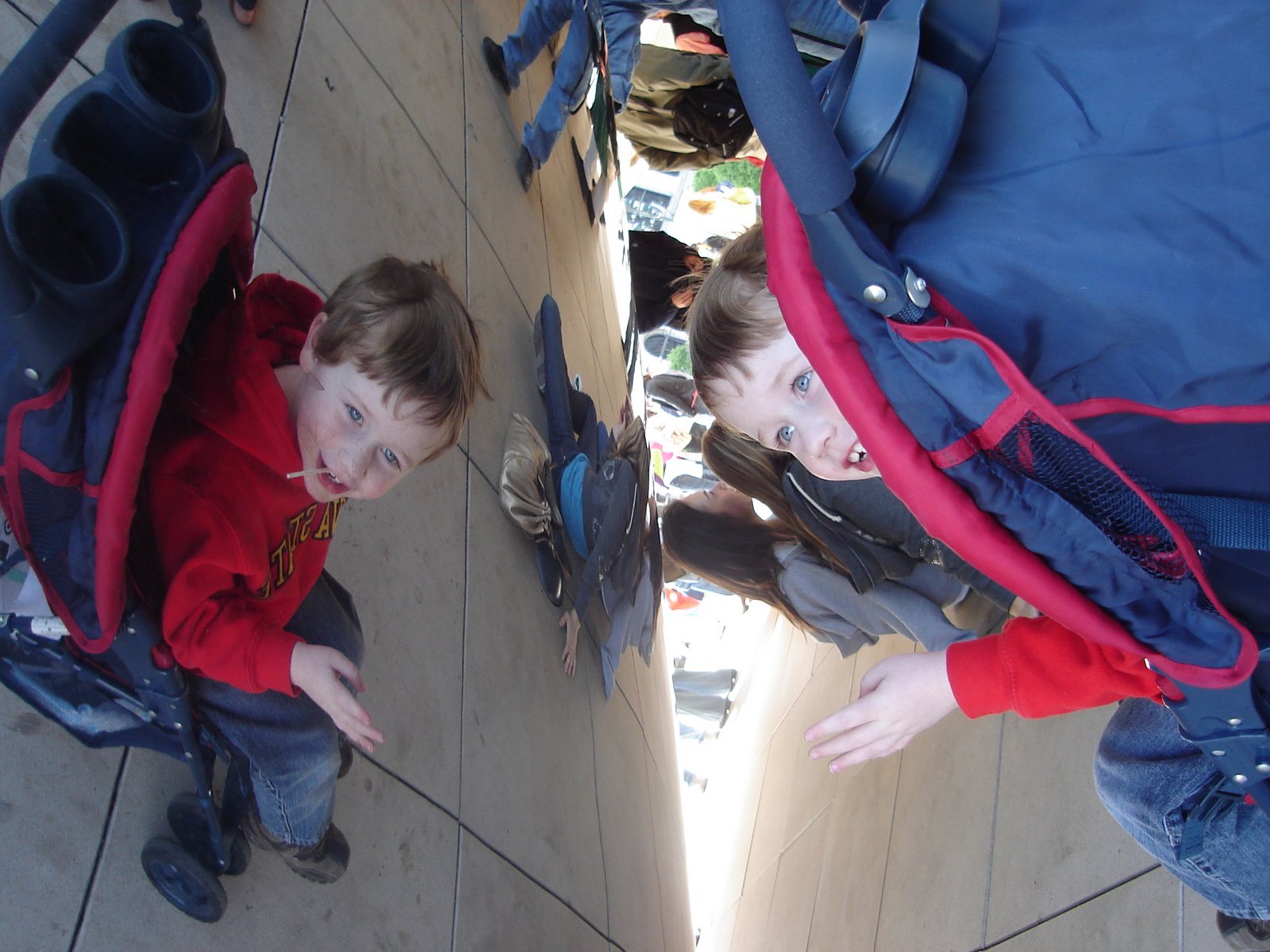 We went back to do one more art project and then the museum was closed. So we walked around Millennium Park a bit, including a stop at the "bean" which Benji got a big kick out of. He also enjoyed rearranging the family in different orders when we sat down on a bench and later on some steps.