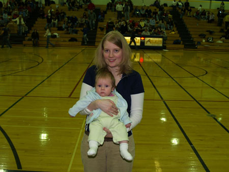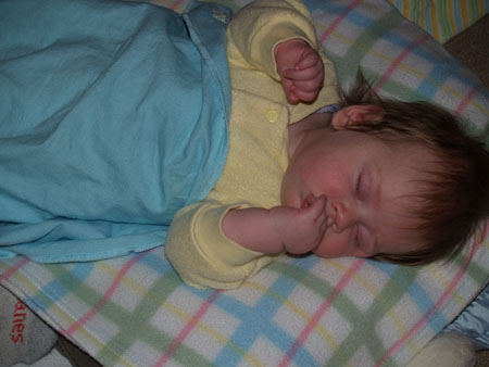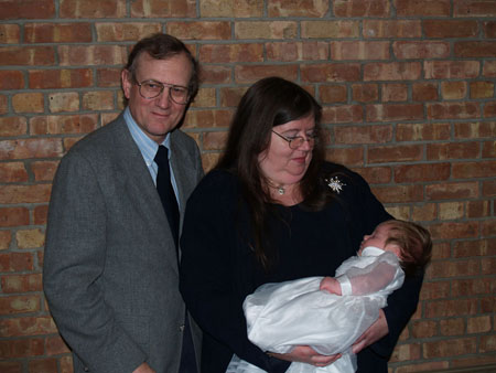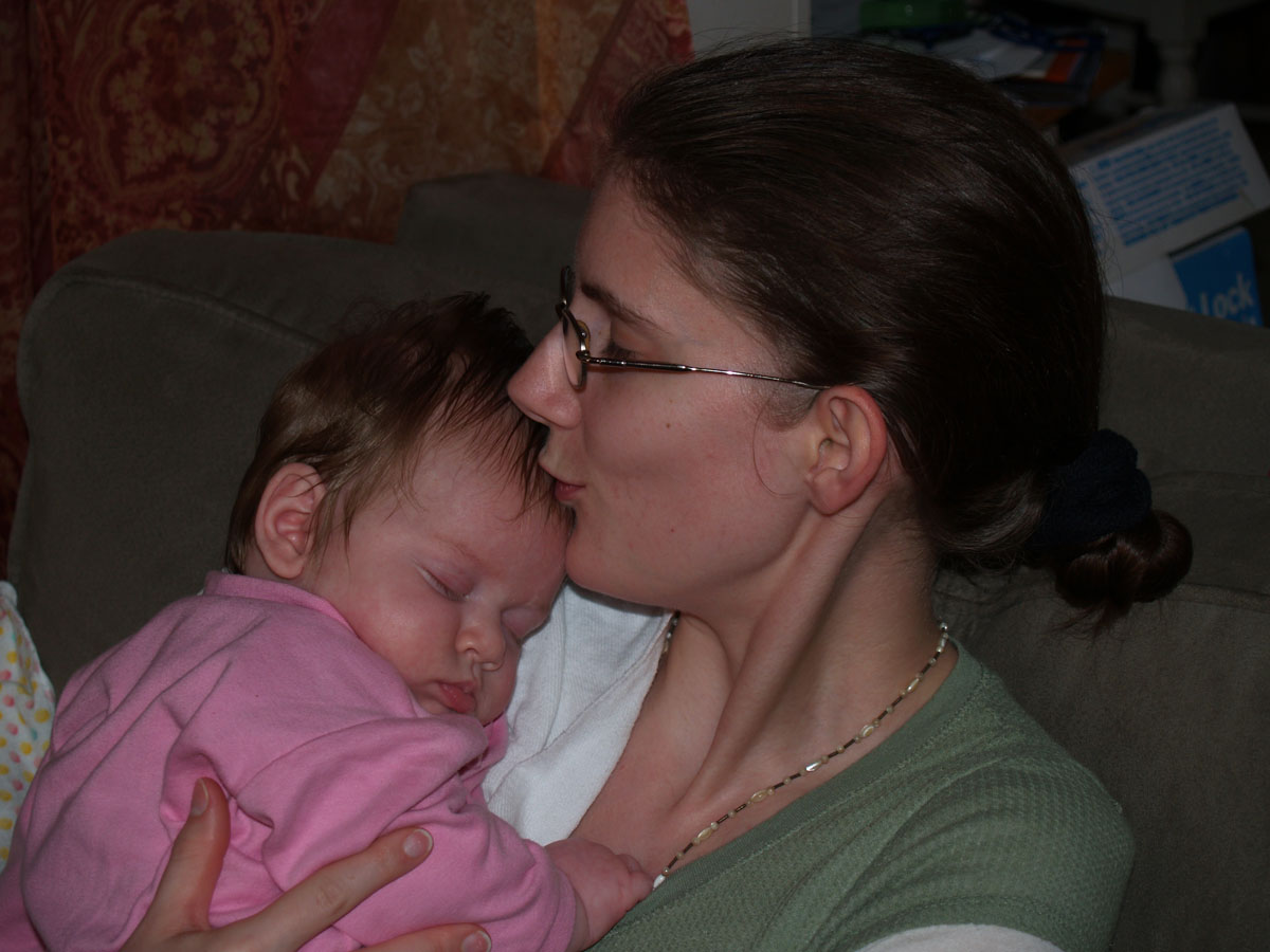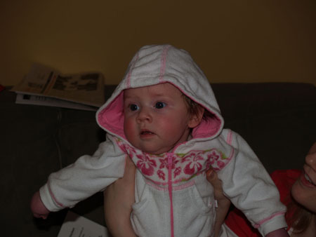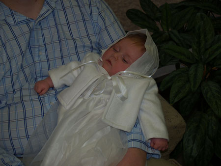 [in her full baptismal outfit: gown and jacket made by grandma p., and bonnet from mommy and daddy's friends rich and naomi.]
