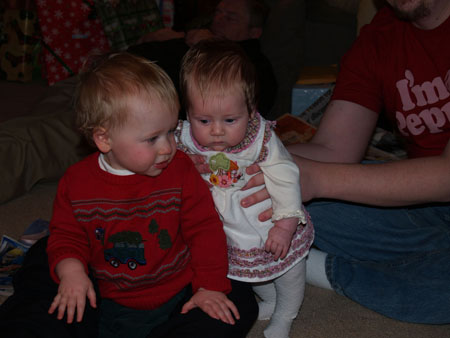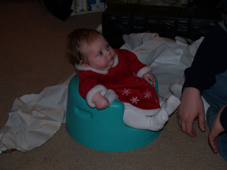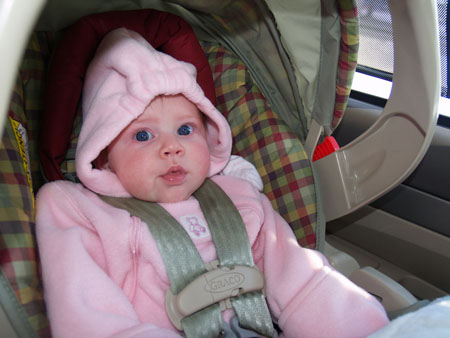 [the label says ava's bumbo chair she got for christmas is not to be used as a car seat. aw, what fun is that? :-P]