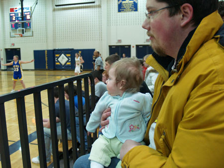 [keeping an eye on the action. (she really did seem to look toward the part of the court where the players were.)]