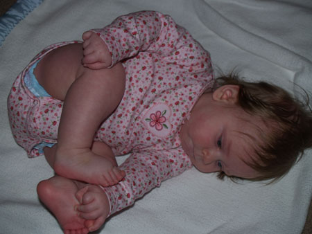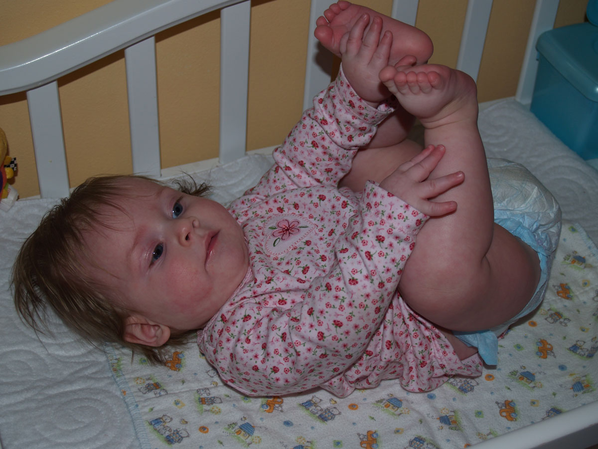 Last week, Ava discovered her feet. About a month before that it had been her knees, and ever since then she'd been inching her way closer and closer to those cute little toes.