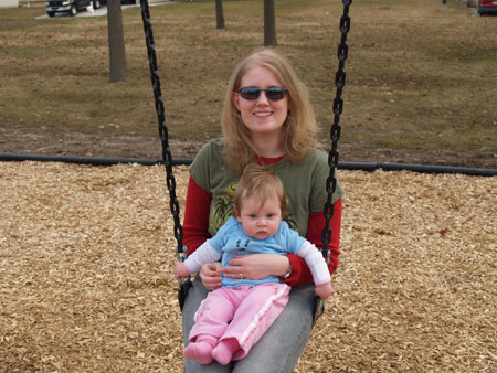 While Josh was in Chicago for a business trip this week Ava and I went to a different park and she tried out a baby swing, which she really seemed to like. We'll have to do that with Daddy so he can hear her happy noises (and maybe we can get some pictures or even video, though I make no promises).