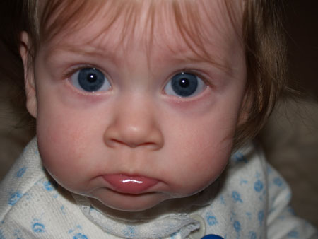 Josh is at work -- yes, at 9:30 on a Saturday night, which completely blows, by the way, both for me and especially for him -- because he has a crapload of stuff to do. I have an infected tear duct (and beet red, constantly watering and itching eye) for which I'm on a nasty-strong antibiotic whose side effects can include nausea, vomiting, diarrhea, headaches, stomach pain, joint pain, yeast infection, fatigue, insomnia, depression and confusion. (Two days and I've had the pleasure of a couple of the side effects but none of the actual getting better yet. And if it doesn't work I might have to undergo some sort of scary minor surgical procedure, oh goody.) Ava is teething and kind of fussy in general as a result. So Josh is all stressed out about work, I'm all stressed out about my eye, Ava's all stressed out about her gums, and we're all stressed out about each other's stuff, because that's the way it works. So I felt like doing a little fussing of my own. Wah.