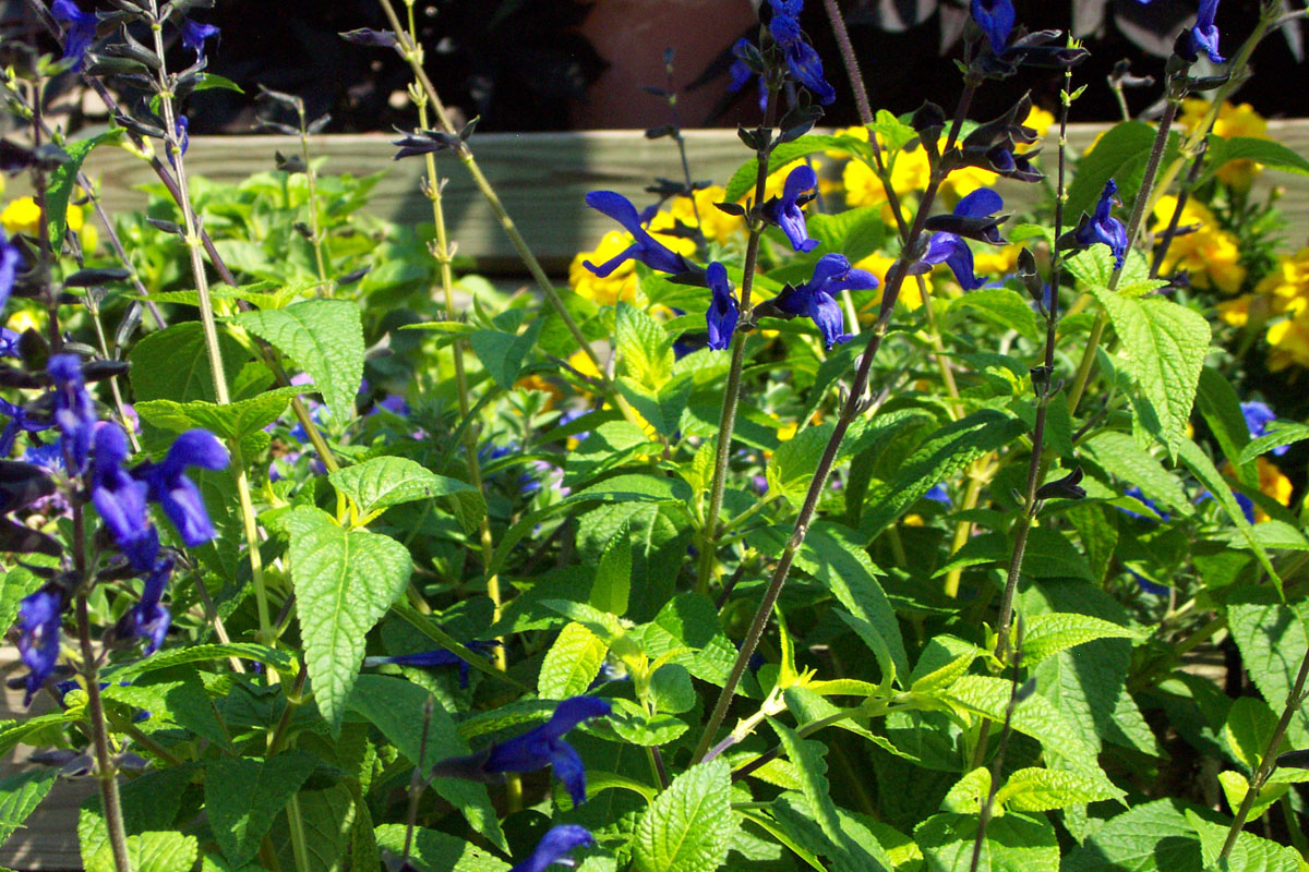 Purty flowers growing beside the steps outside.