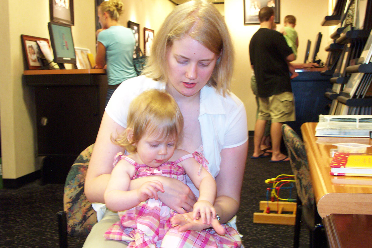 a little hungry, so she ate some puffies while we waited to look at our proofs.