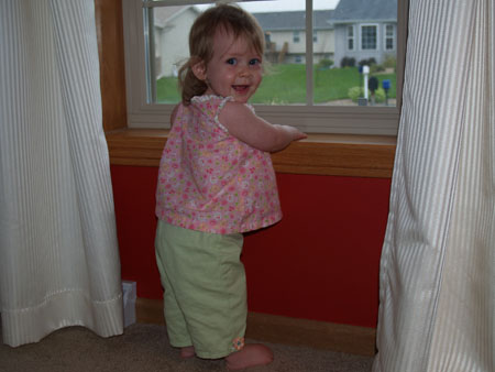 Now she pulls up to standing very easily (and has recently figured out how to get down again somewhat gracefully, though she doesn't seem to always remember that she knows how).