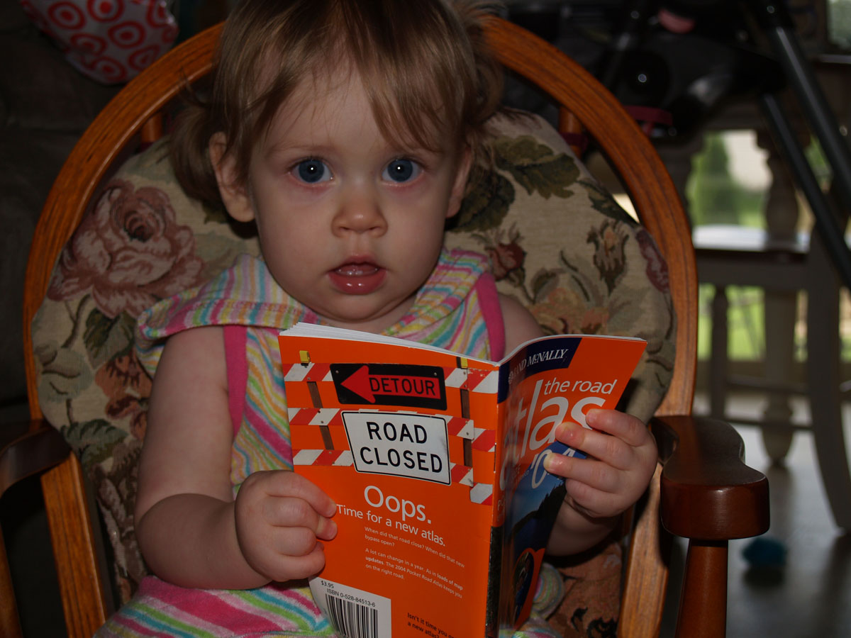 Checking out her Ava-sized atlas. Maybe she'll love maps as much as her mommy and daddy do.