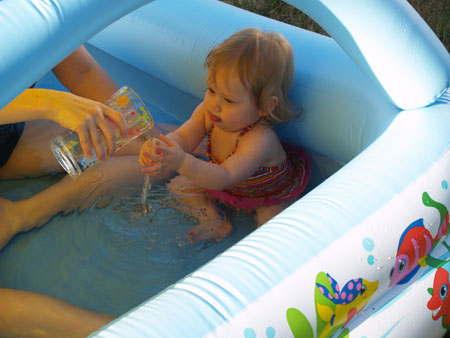 We bought an inflatable pool for the backyard (one small enough for Ava but big