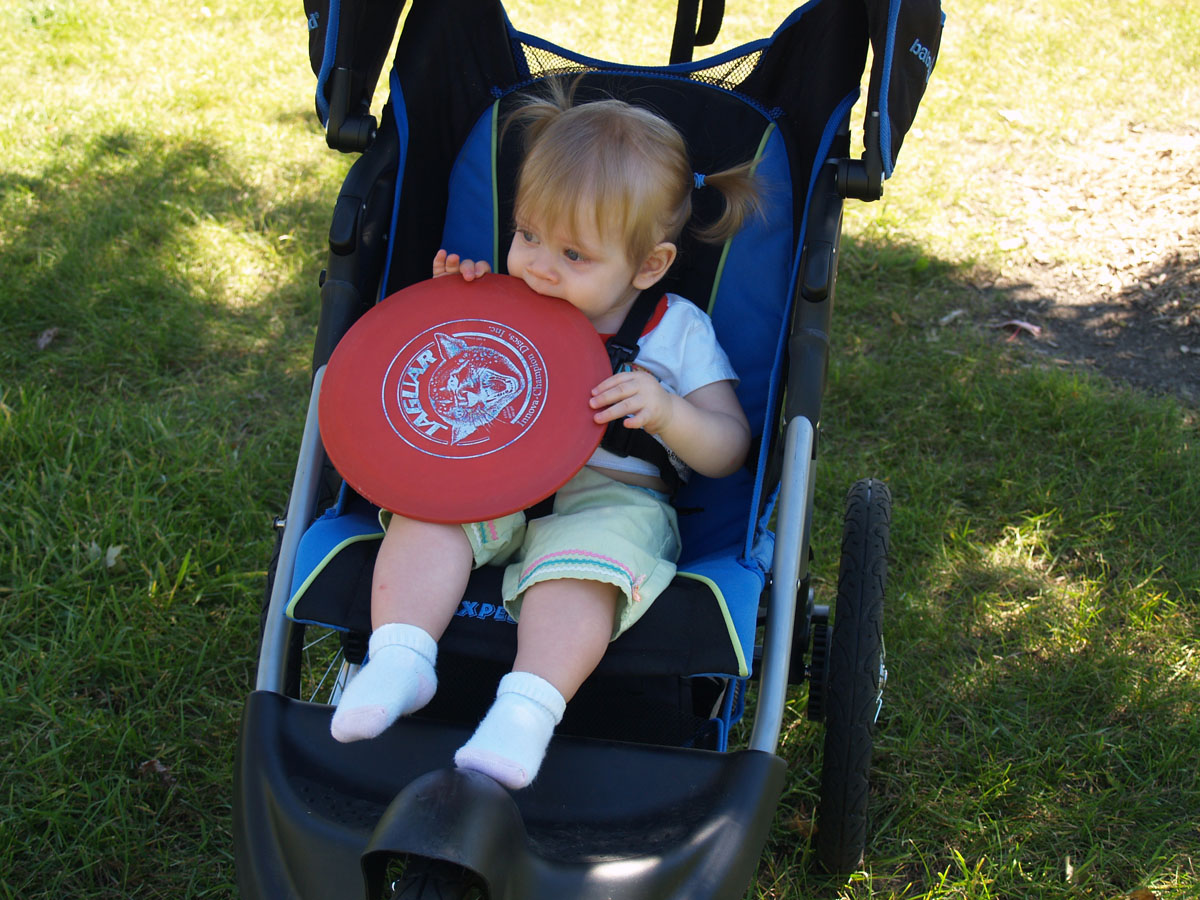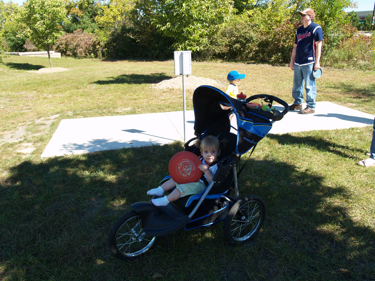 9 holes of disc golf is really the perfect amount with a stroller/toddling toddler.