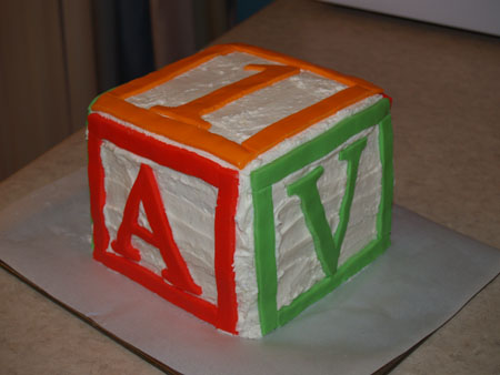 I was all ambitiouslike and made her a six-layer alphabet block cake that spelled