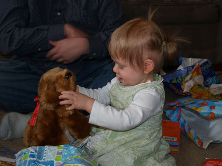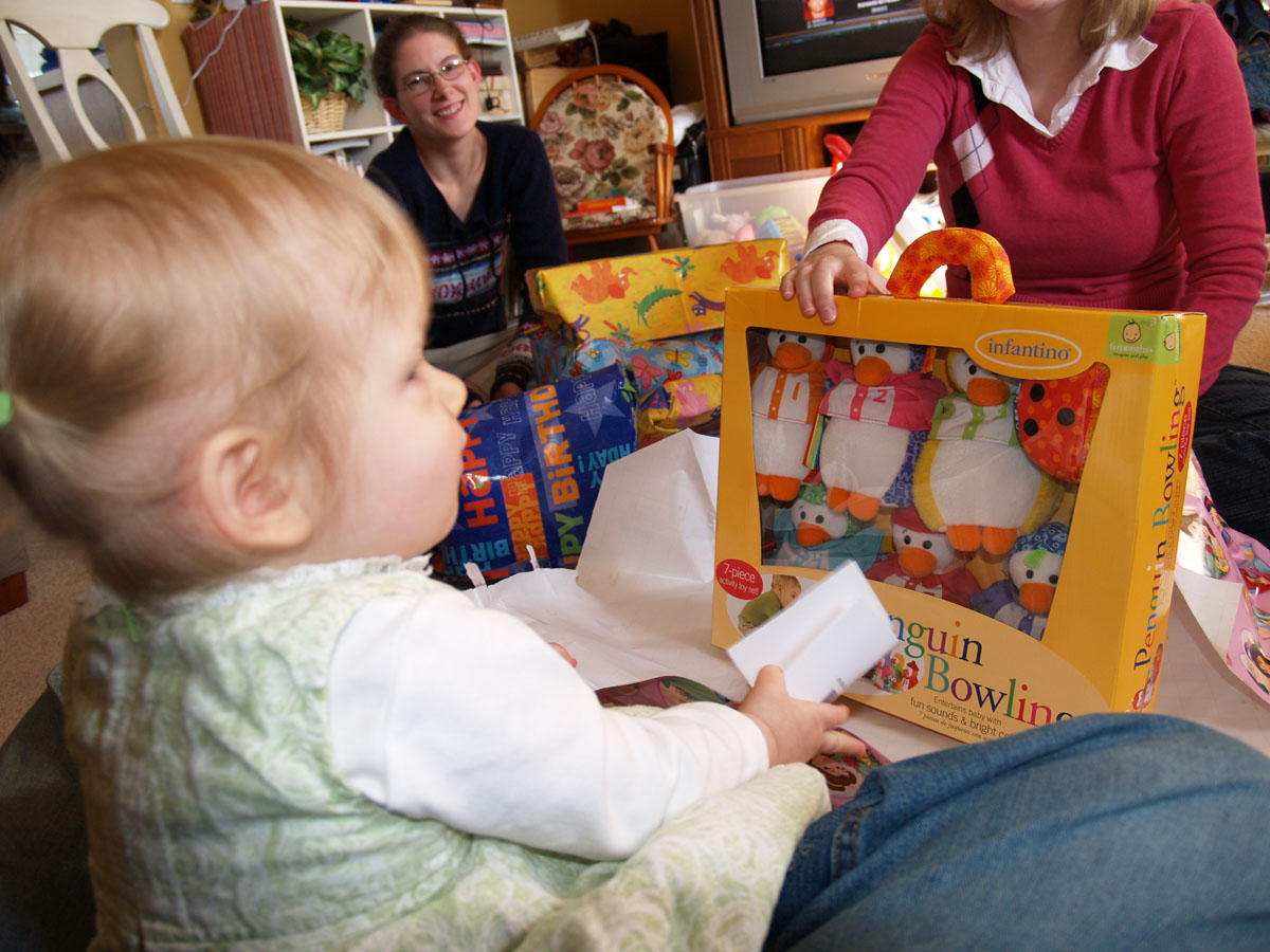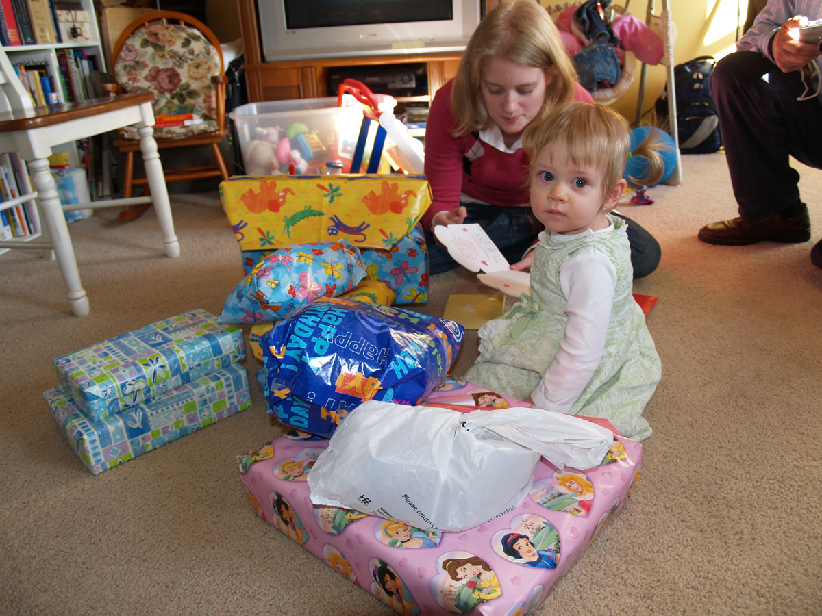 At this age you try to open the presents as quickly as possible before the birthday girl loses interest and crawls off.