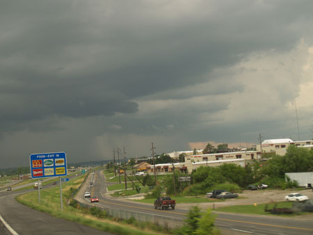 There was severe weather in the area (including tornado warnings -- fun!) as we drove into the Kansas City area. I love it when you can see the curtains of rain coming from the storm clouds, though.