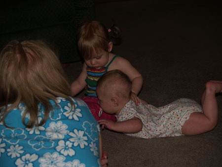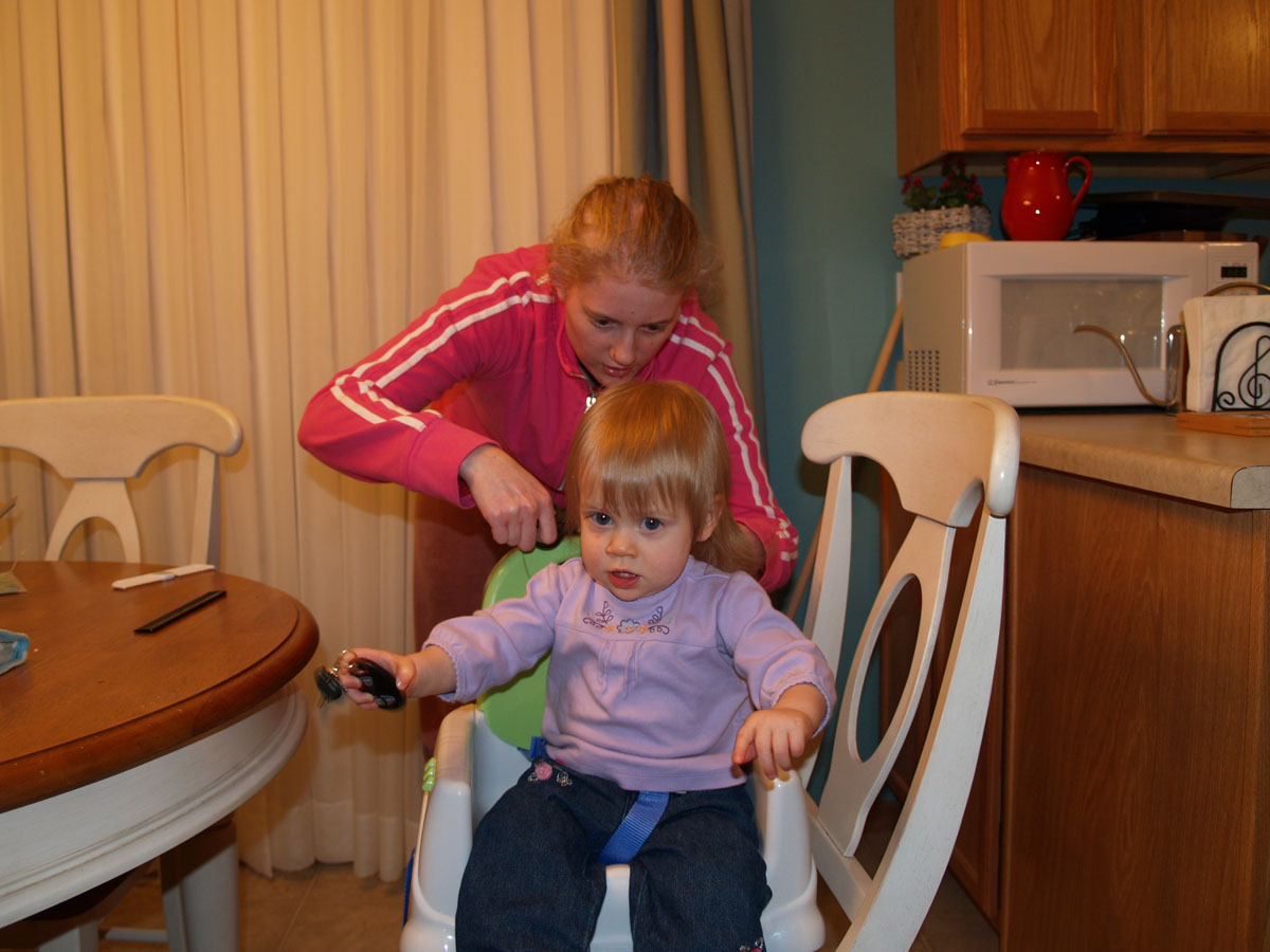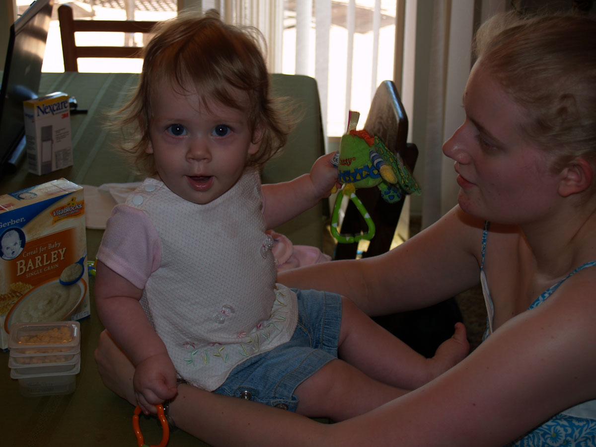 My cousin Rachel very nicely lets Ava play with her phone, and Ava in return sits on her lap.