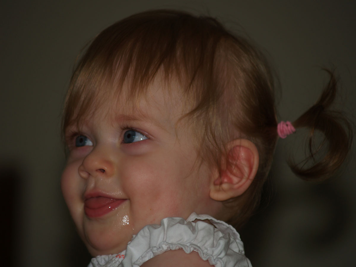 I just tried pigtails on her for the first time today (a week after her haircut), and her hair is *just* long enough for a couple of short ones. Yay!