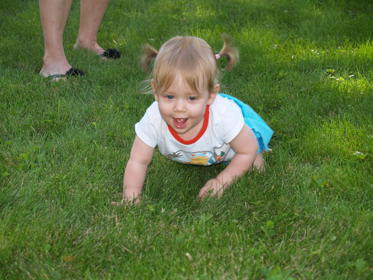 Our lawn at home isn't soft enough for Ava to crawl on, so she seemed