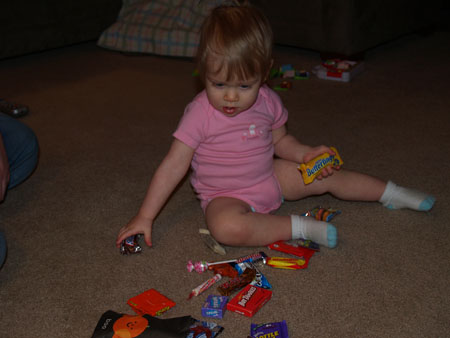 We didn't stay out very long, so her loot wasn't very big, but it was still interesting to paw through.