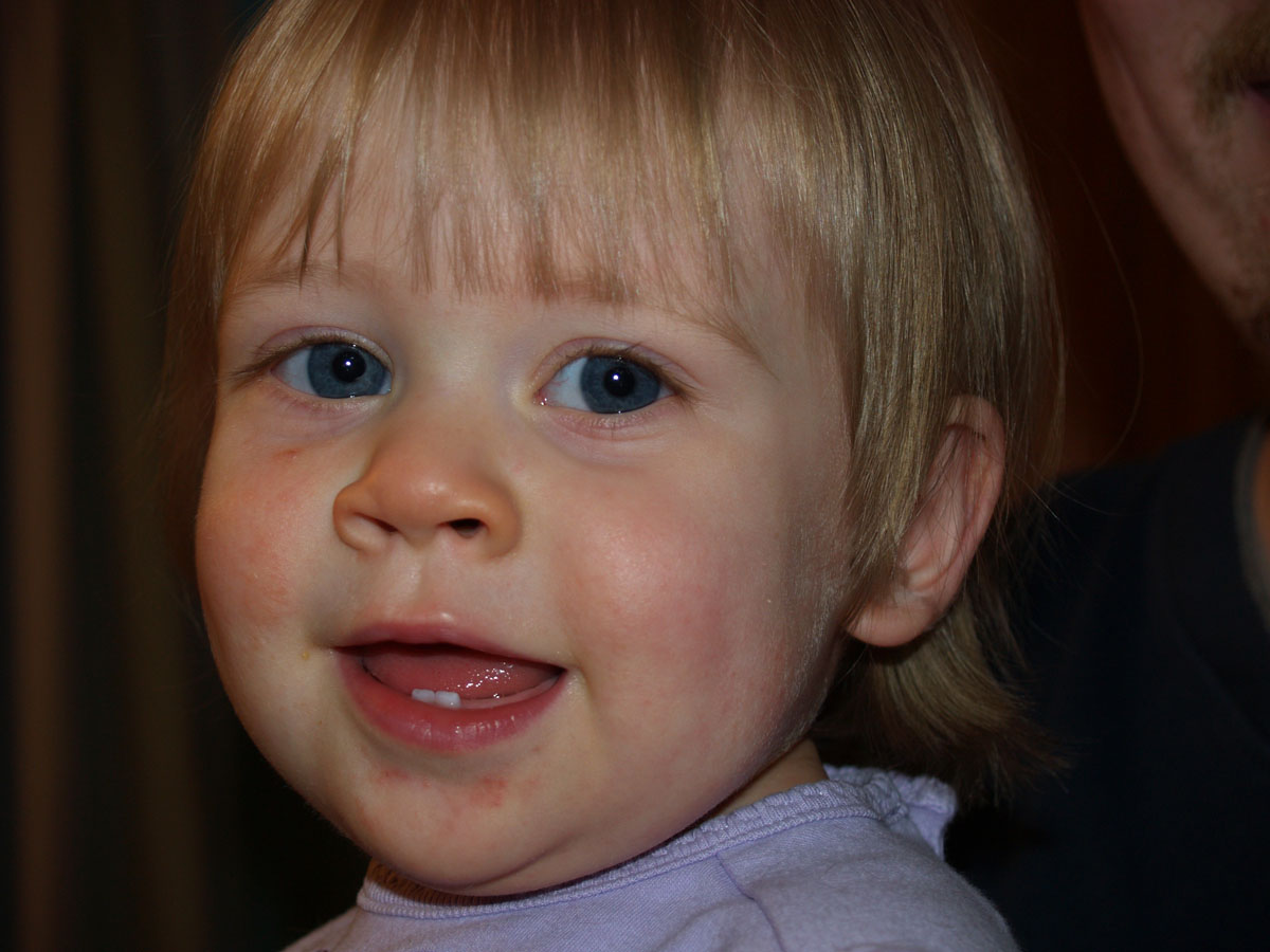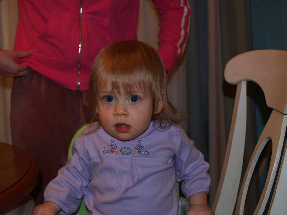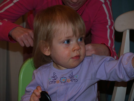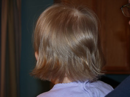 The back of her booster seat is in the way a bit, but you can still see pretty well just how long (and mulletish) her hair was.