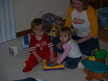 Benji and Ava actually share a toy. For a few seconds, anyway.