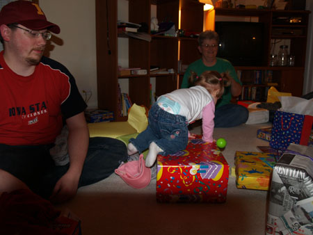 As far as Ava's concerned, presents are just as much for climbing on as for opening. Maybe even moreso.