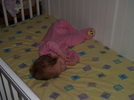 She's more vocal, too. I haven't heard what I would quite call a laugh yet*, but she makes a lot more (and more varied) sounds than she used to, at times rather rhythmically. If we manage to get a good video of some of this I'll post it.