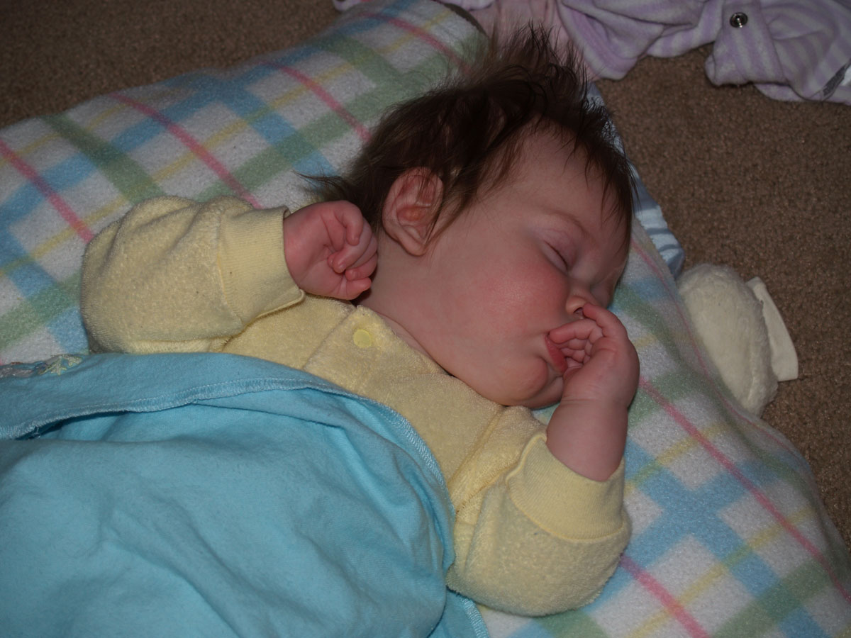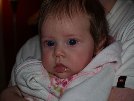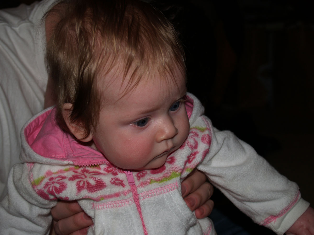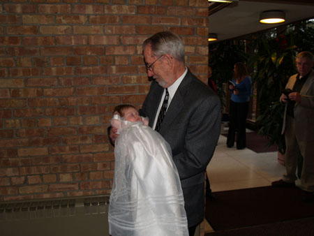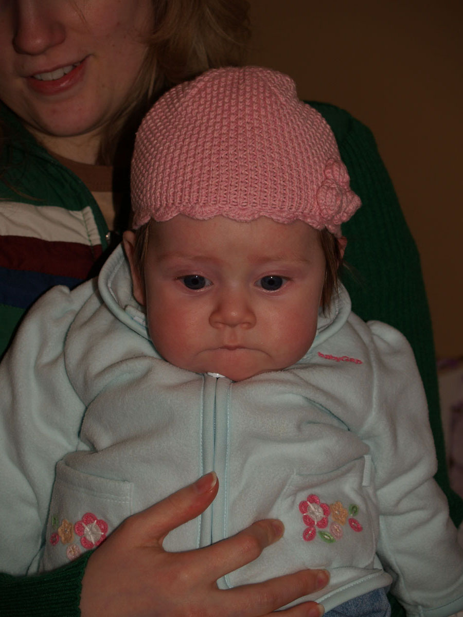 [in her full baptismal outfit: gown and jacket made by grandma p., and bonnet from mommy and daddy's friends rich and naomi.]