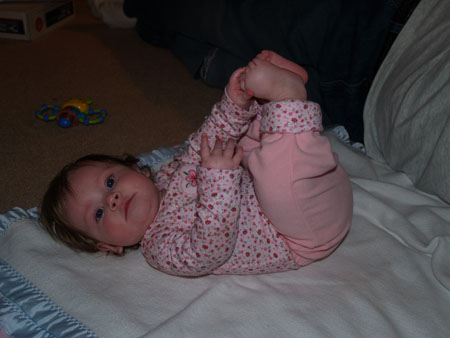 Last week, Ava discovered her feet. About a month before that it had been her knees, and ever since then she'd been inching her way closer and closer to those cute little toes.