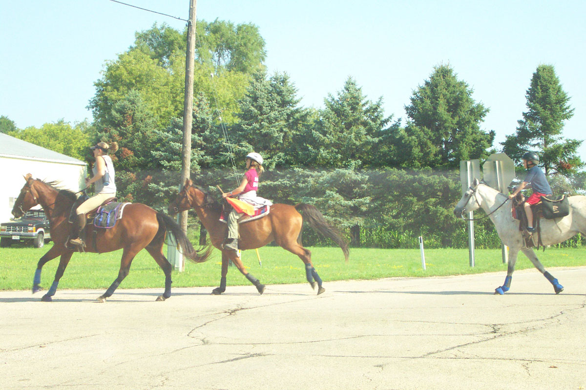On our way to church, a group of horses and riders crossed