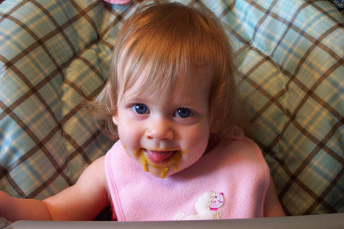 Ava eats chicken for the first time. She ate about a third of the jar,