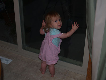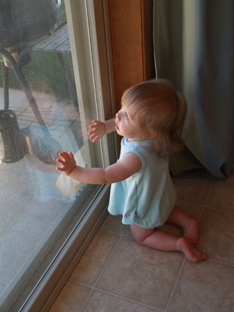 She started the month off getting up on her knees by everything, with the patio door being a favorite spot.
