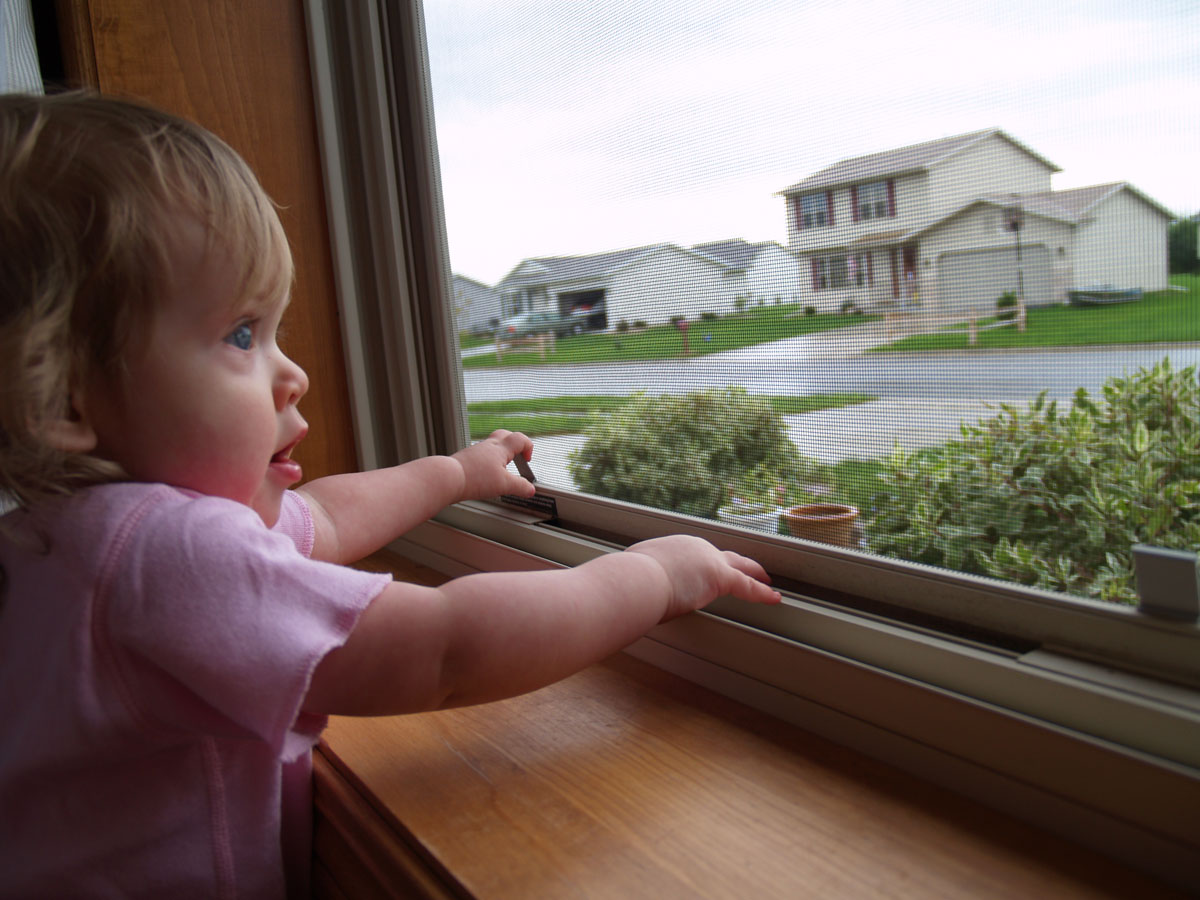 The window ledge is the perfect height for her.