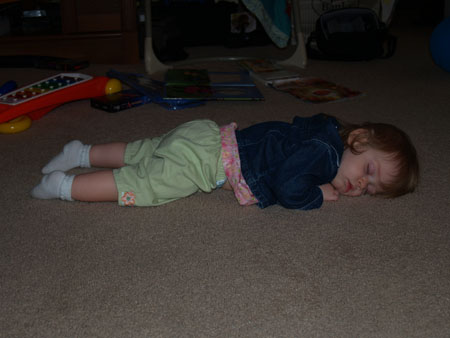 She also loves the air conditioner vents (especially when they're blowing), mirrors, looking at other babies (she likes looking through our parenting magazines since they have lots of pictures of babies), crawling up the stairs (um, a lot), crawling in general (she'll hardly sit still long enough to play with her toys right now), jabbering in her own little language, sitting in her little rocking chair (seen in the atlas photo) and taking clothes out of the laundry basket and throwing them on the floor. She's been trying out more "real" food, including pieces of nectarine, broccoli, carrots, chicken, pasta, grapes, bread, etc. It definitely takes longer to feed her when she's partially feeding herself and we have to wait for her to actually chew (such as she can), but she has to learn it, so we have to do it. We've also been having a few more nighttime issues than we did before -- if we try to put her to bed awake (when she doesn't fall asleep nursing), she'll usually stand up in her crib and cry when we leave the room, and she'll occasionally do that during the night, too, when before she would always sleep right through without a problem. We're figuring it out, though, I think, despite the conflicting advice we've read (we've tried different things and found out what works with her and what doesn't, at least right now).