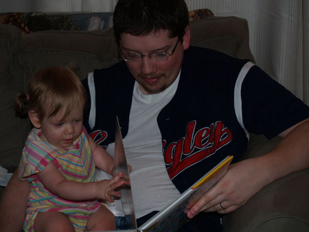 She likes to pull the books out of the bookcase in the living room. Here she decided to page through the Better Homes and Gardens Cookbook. Pretty soon we should be able to get her to cook dinner for us. I mean, really, it's about time she started pulling her weight around here. ;-)