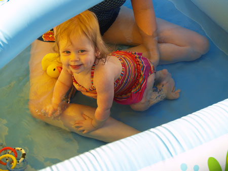 We bought an inflatable pool for the backyard (one small enough for Ava but big