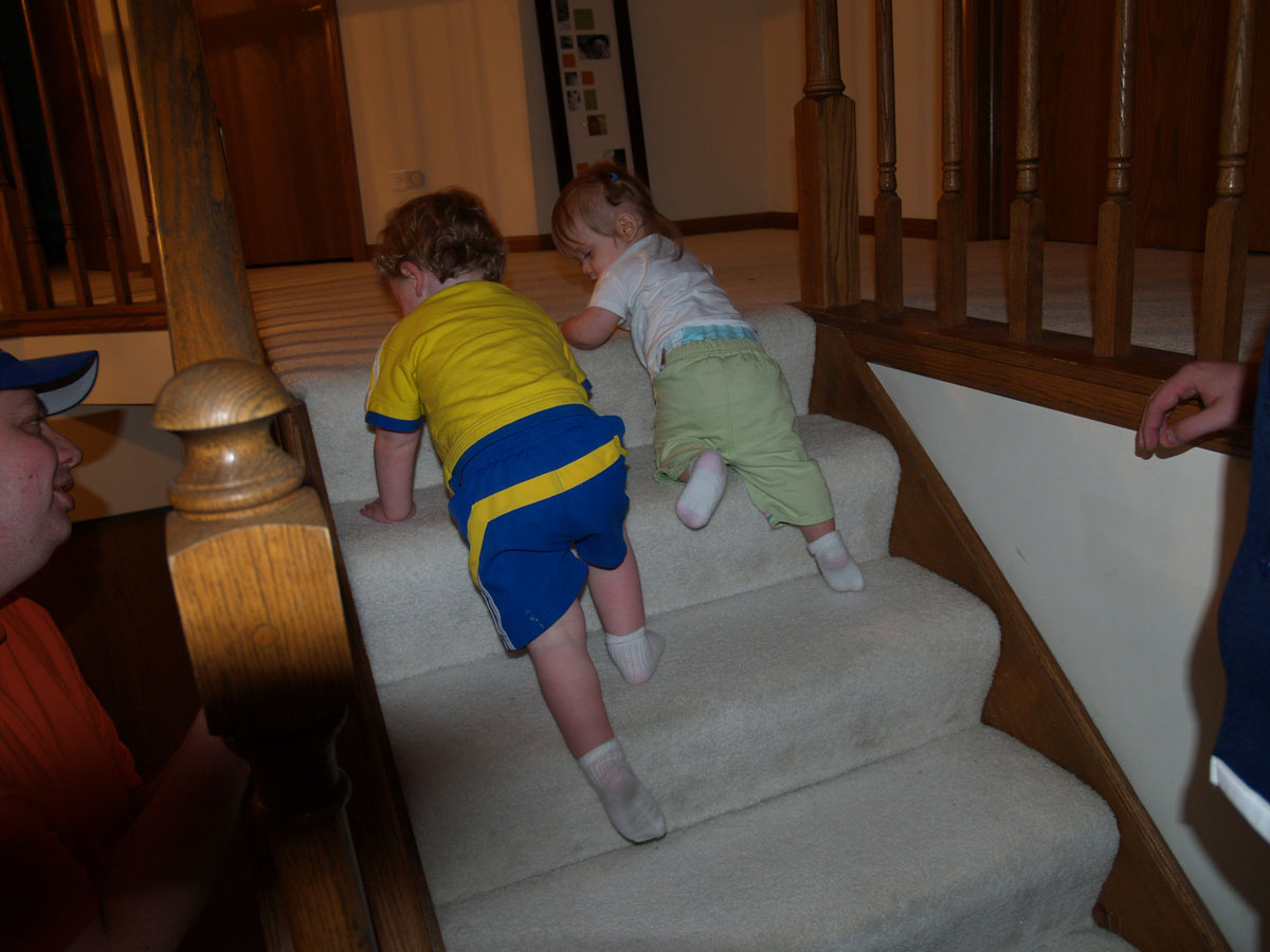 the stairs. It was so funny to watch them sort of race each other.