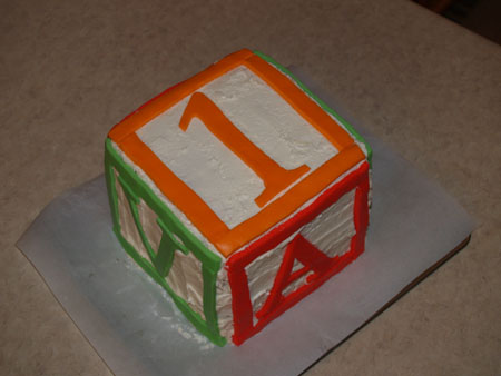 I was all ambitiouslike and made her a six-layer alphabet block cake that spelled