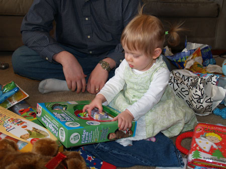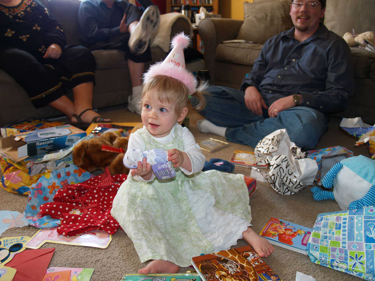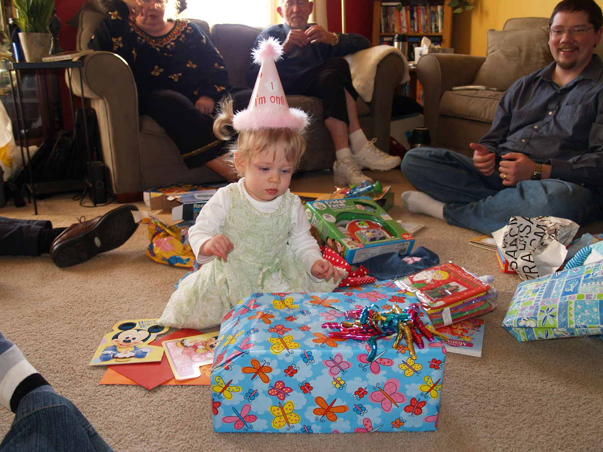 At this age you try to open the presents as quickly as possible before the birthday girl loses interest and crawls off.