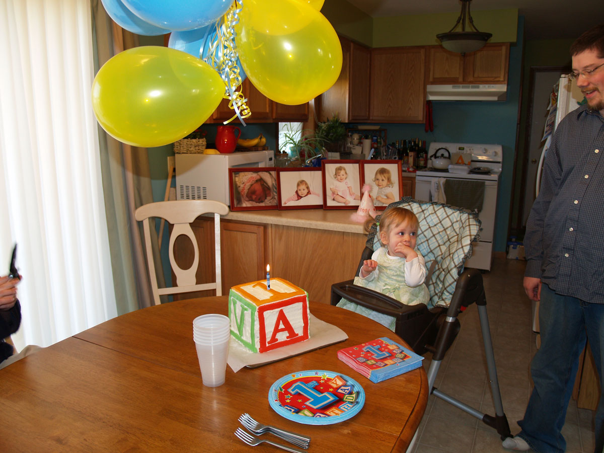 Ava's first birthday was on Sunday (um, how did that happen, anyway?), and we just had a low-key family celebration with my parents, my sister Sarah, and my grandfather coming up for it (we got together with Josh's family a week earlier -- I'll post pictures of that soon).