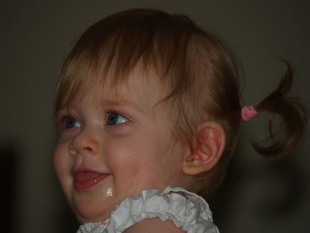 I just tried pigtails on her for the first time today (a week after her haircut), and her hair is *just* long enough for a couple of short ones. Yay!