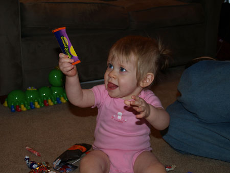 We didn't stay out very long, so her loot wasn't very big, but it was still interesting to paw through.