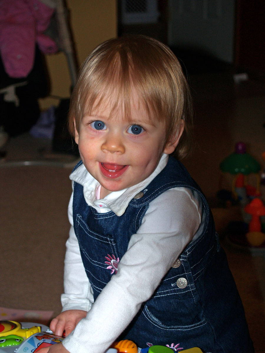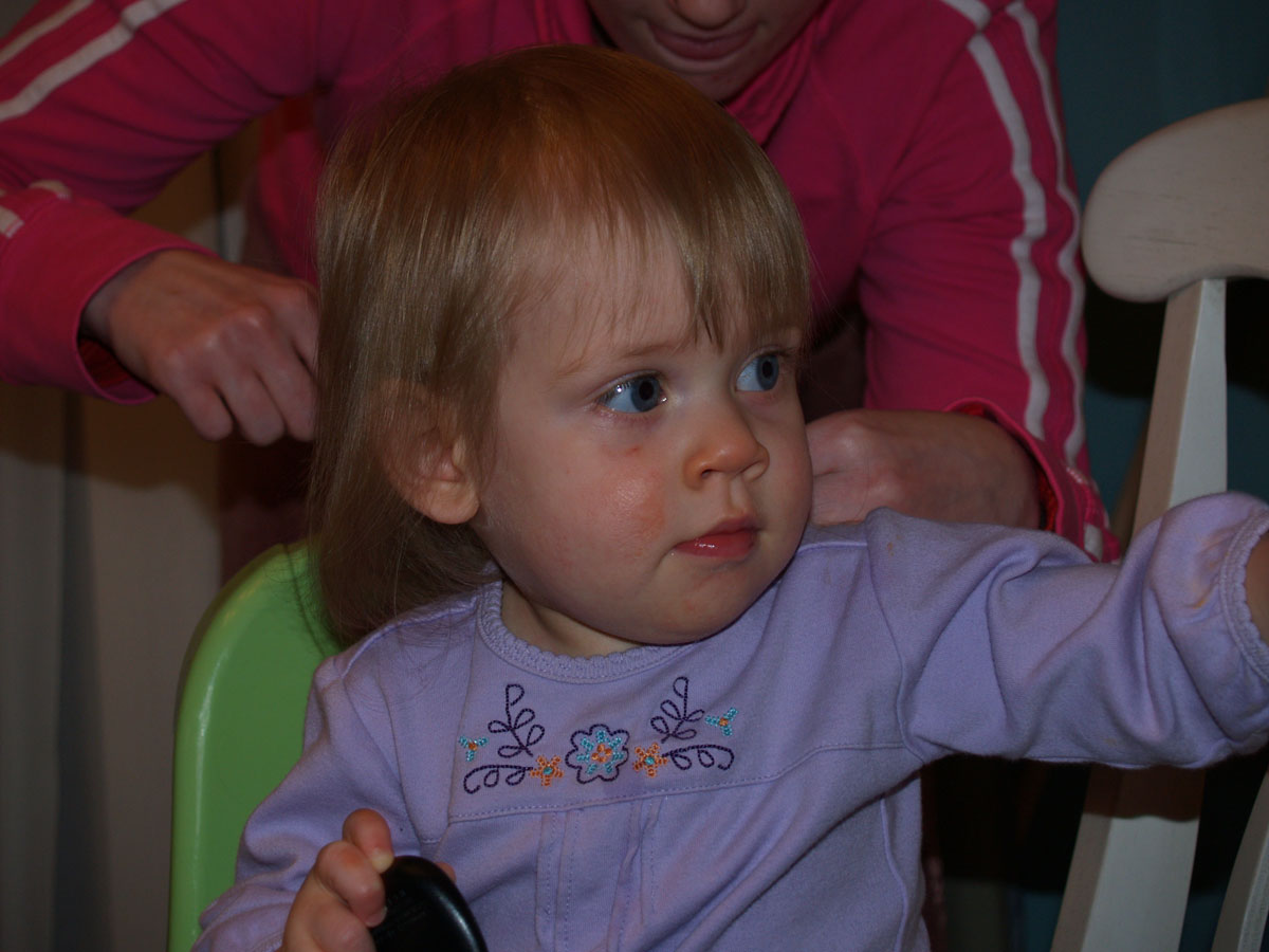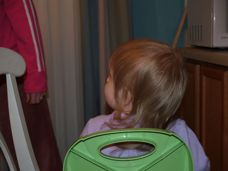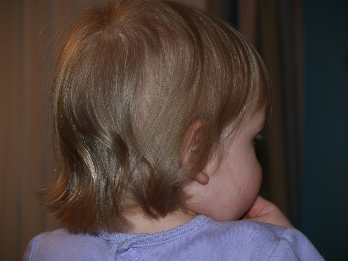 The back of her booster seat is in the way a bit, but you can still see pretty well just how long (and mulletish) her hair was.